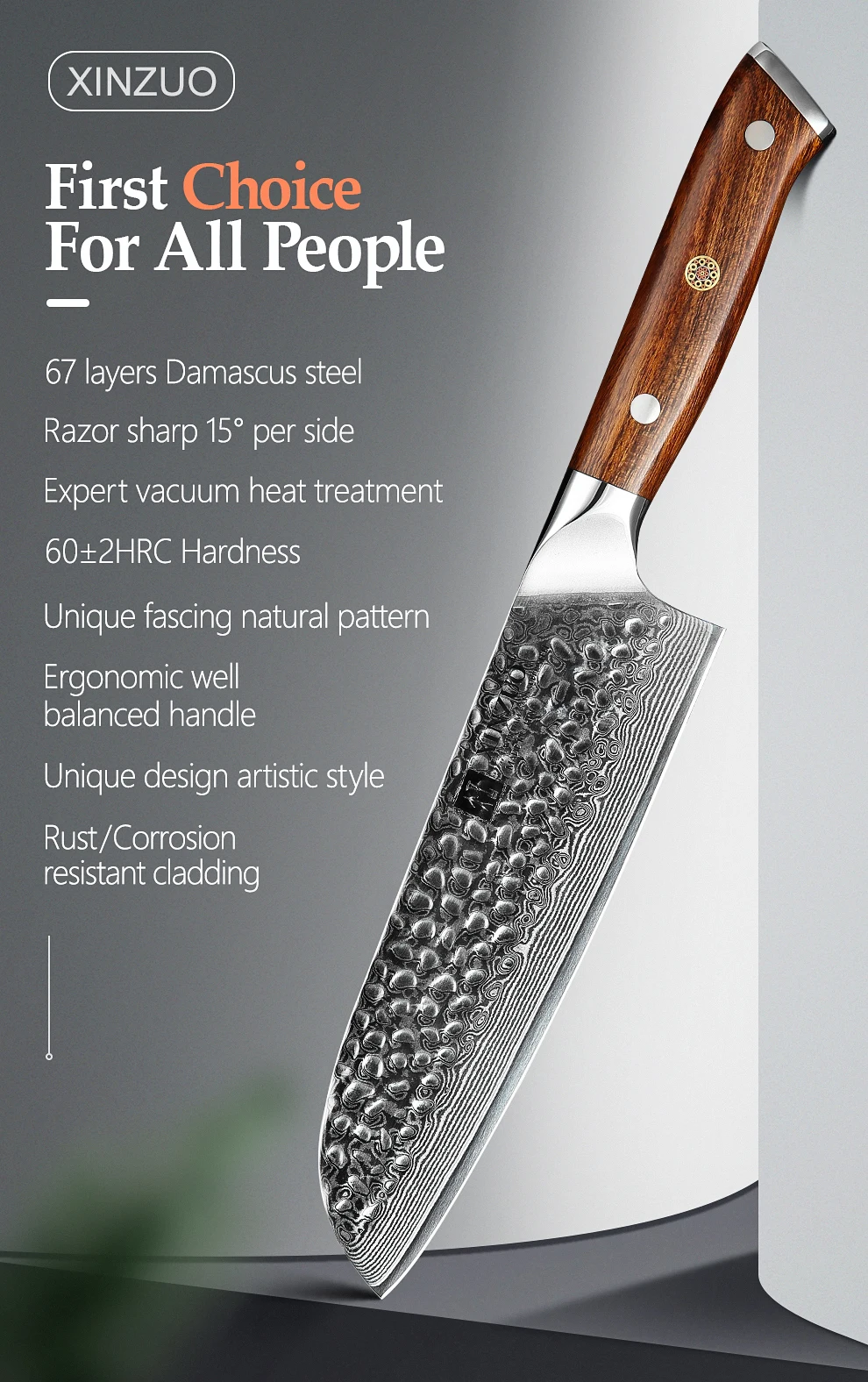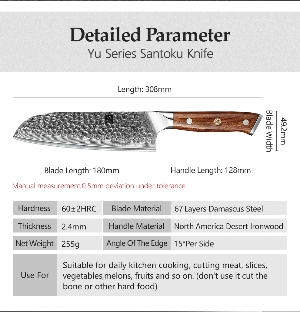 XINZUO Yu серия Дамасская сталь Santoku нож