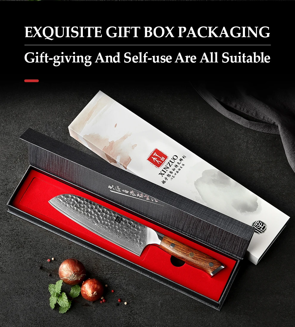 Японские ножи шеф-повара XINZUO 7 дюймов, нож сантоку из дамасской ...