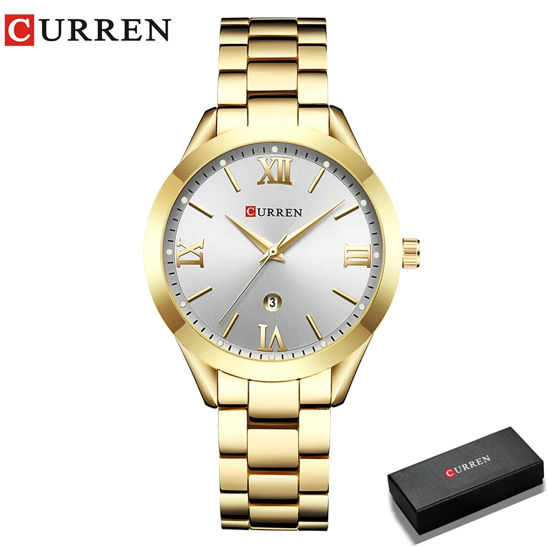 Женские кварцевые часы CURREN, часы из нержавеющей стали с календар...