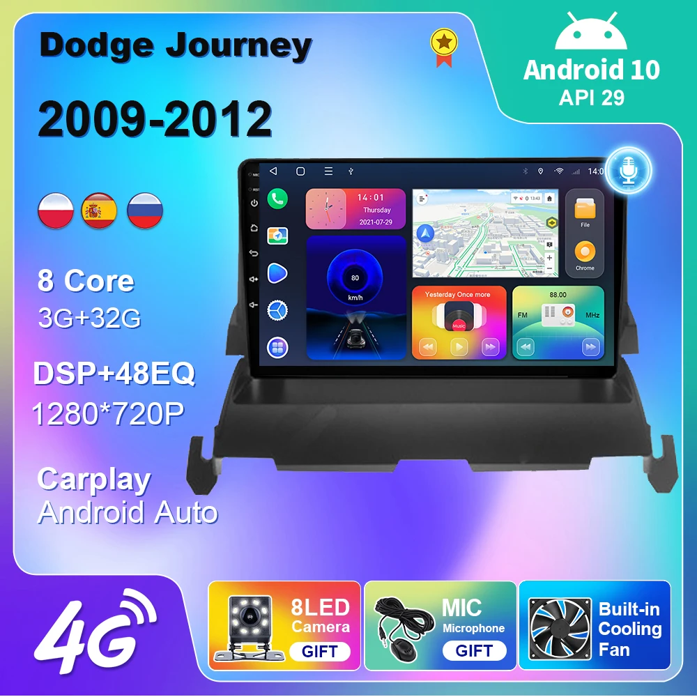 Автомагнитола 2 Din для Dodge Journey 2009-2012 Android 10 GPS навигация 4G WIFI USB Android Авто Bt Carplay DVD мультимедийный плеер