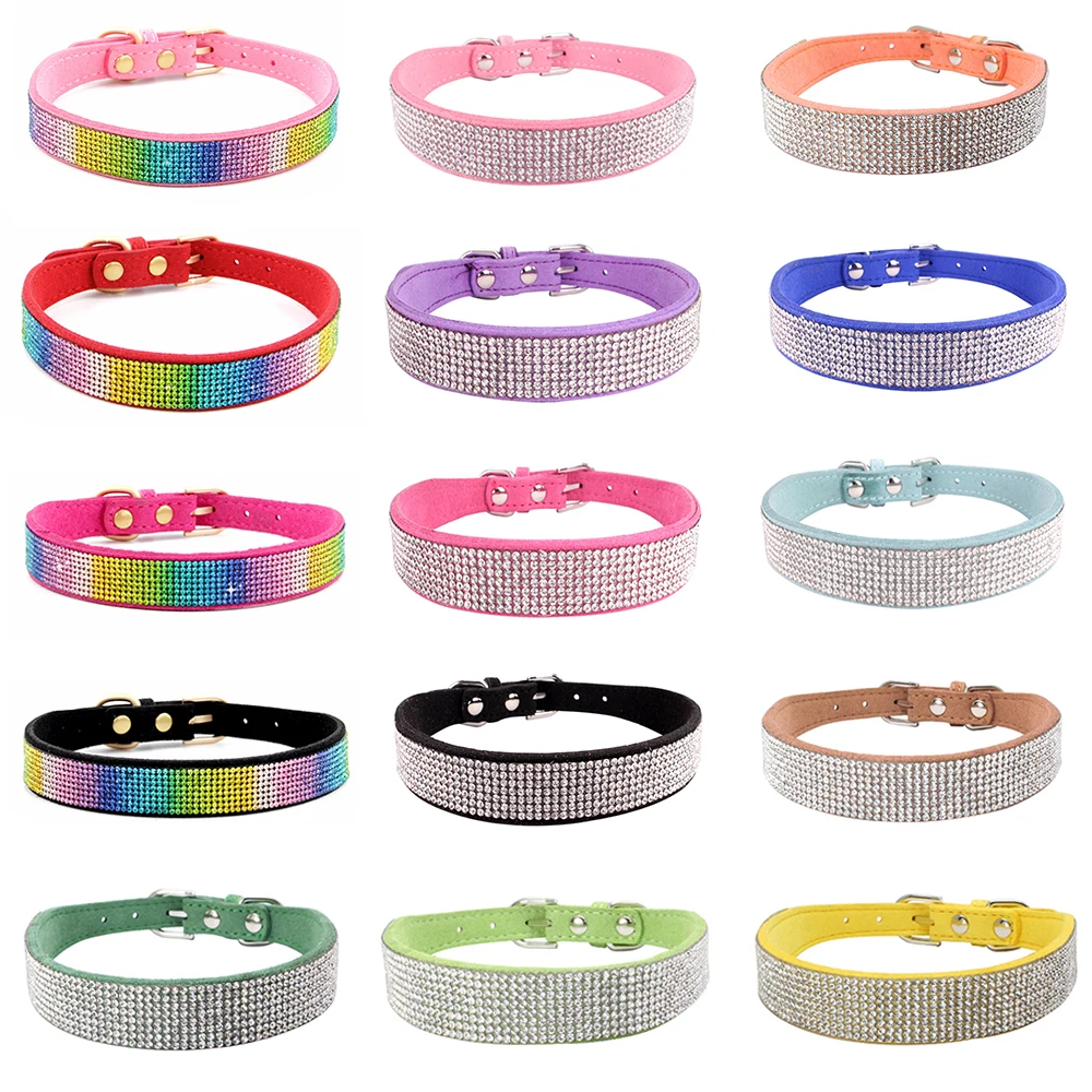 Ошейник для маленьких и средних собак, стразы, регулируемый ошейник из искусственной кожи для мопса, чихуахуа, йоркширских собак