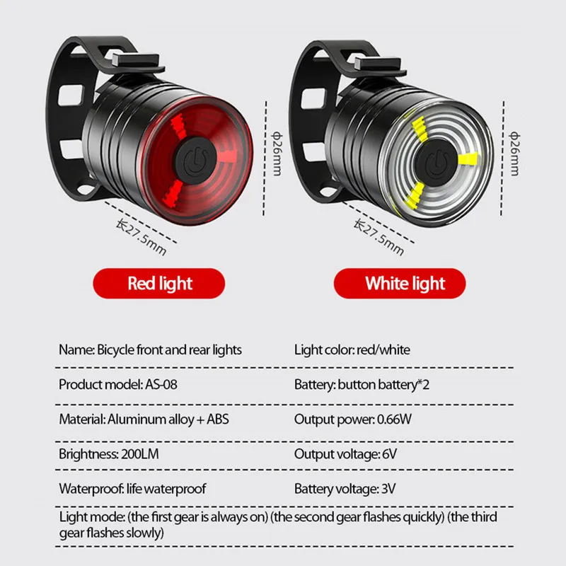 Велосипедный задний фонарь, водонепроницаемый, на пуговицах, 200 лм...