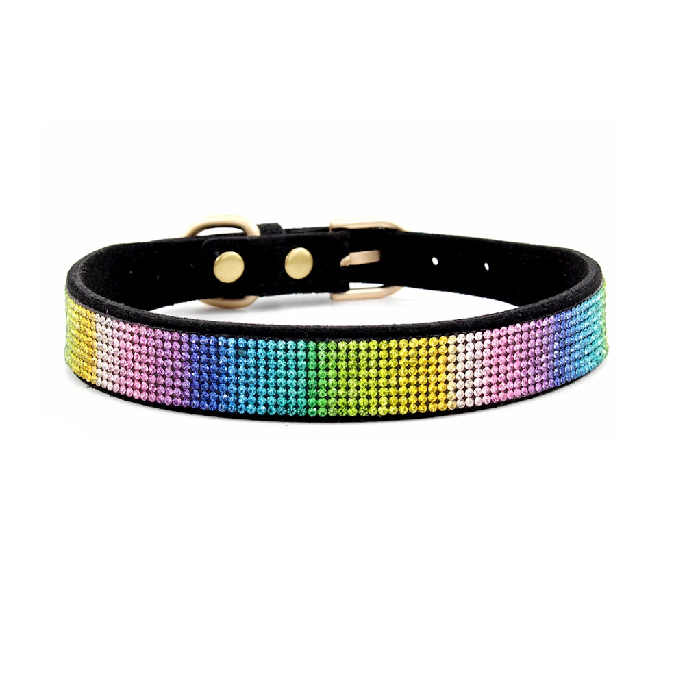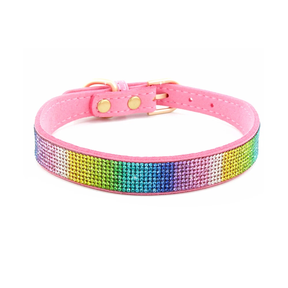 Ошейник для маленьких и средних собак, стразы, регулируемый ошейник из искусственной кожи для мопса, чихуахуа, йоркширских собак