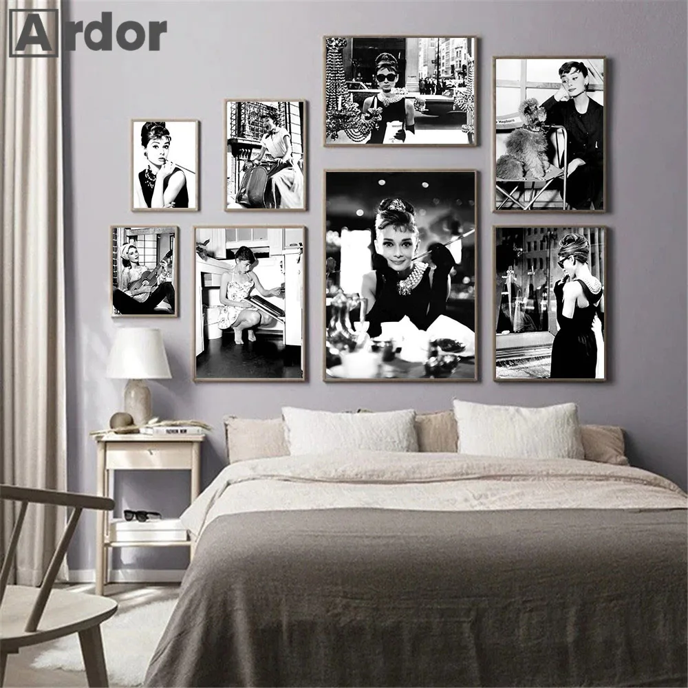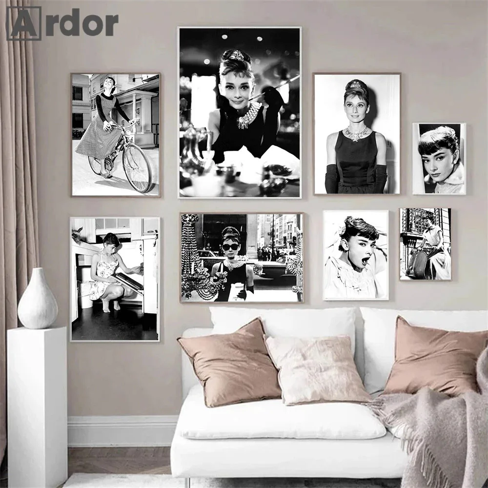 Черно-белый художественный плакат, модная леди, холст, живопись, классический фильм, звезда, женщины, настенный художественный принт, картины, декор для гостиной