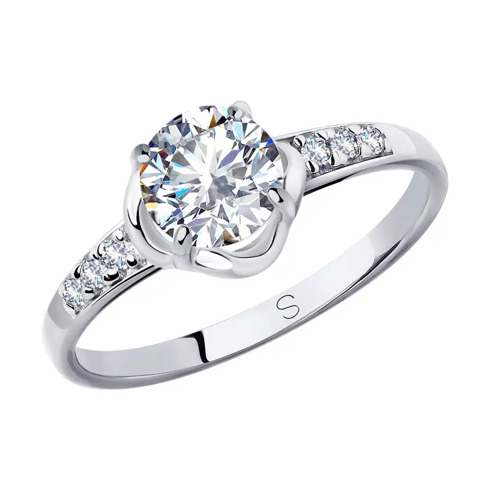 Кольцо SOKOLOV из серебра с фианитом, Серебро, 925, Женское, Оригин...