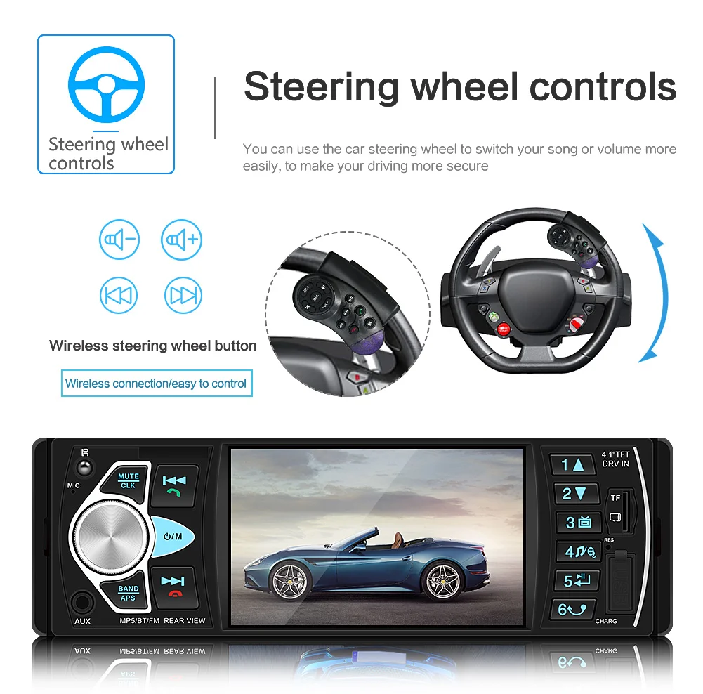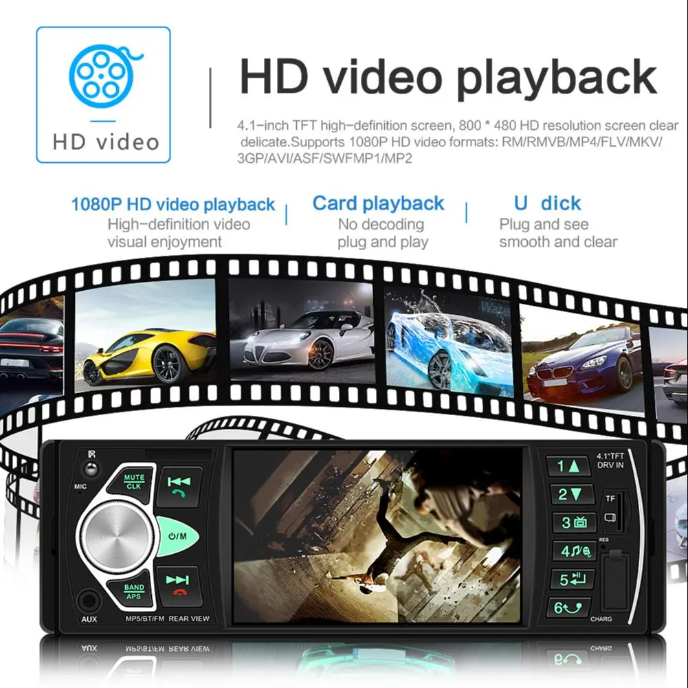 Автомагнитола 1 Din 4,1 дюйма Bluetooth аудио видео MP5 плеер TF USB быстрая зарядка ISO Удаленная стереосистема головное устройство 7805C