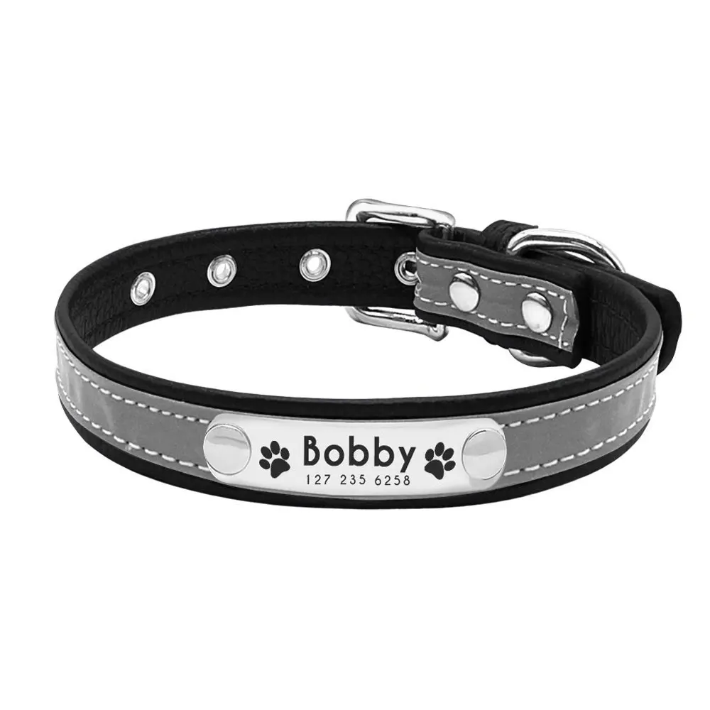Персонализированный ошейник AiruiDog для собак, светоотражающая кожа, идентификационное имя, гравировка под заказ, щенок, предметы для домашних животных, ошейник для собак