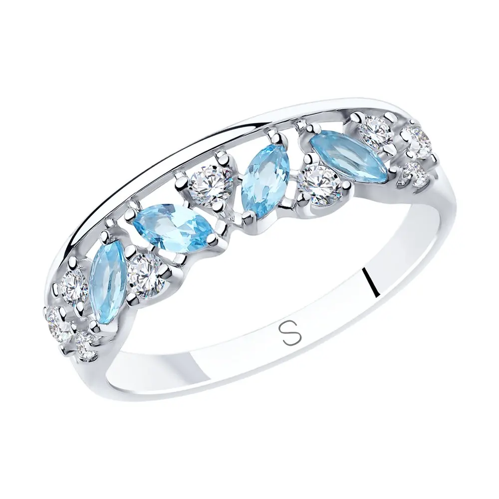 Кольцо SOKOLOV из серебра с синими топазами и фианитами, Серебро, 9...