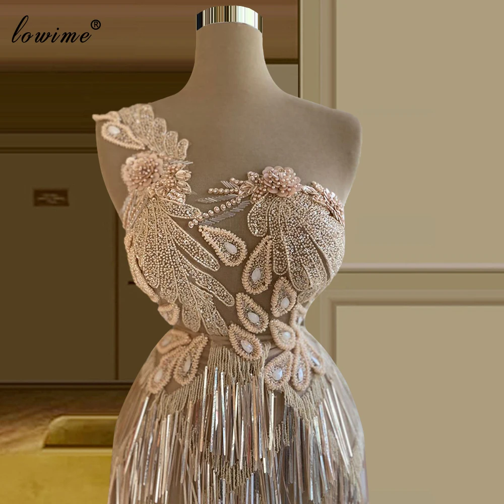 Арабское вечернее платье женское на одно плечо с бисером, кружевное...