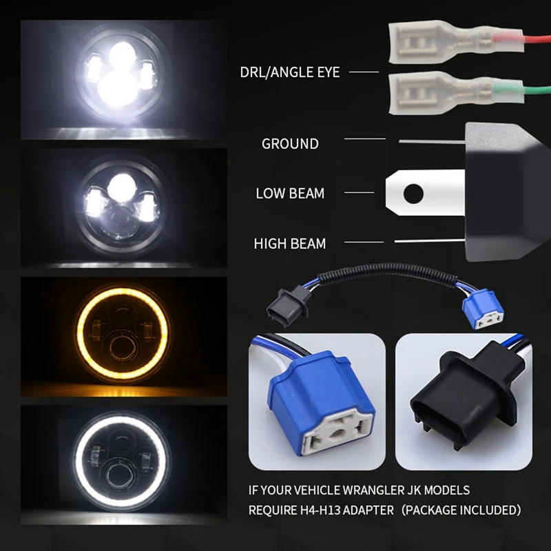 7-дюймовый круглый светодиодный налобный фонарь s гало Угловой поворотный сигнал светильник Jeep Wrangler CJ JK LJ 1997-2019