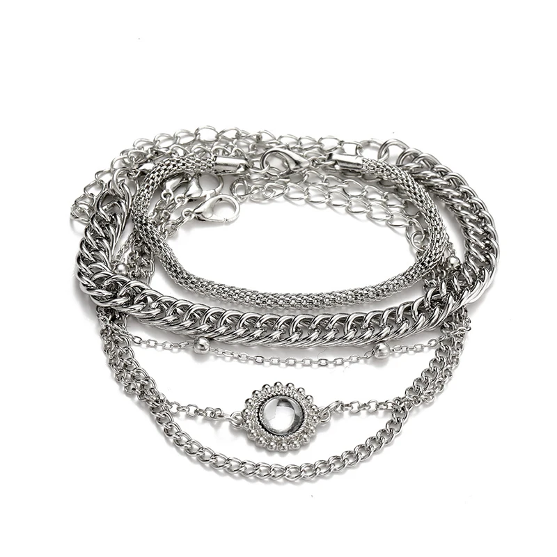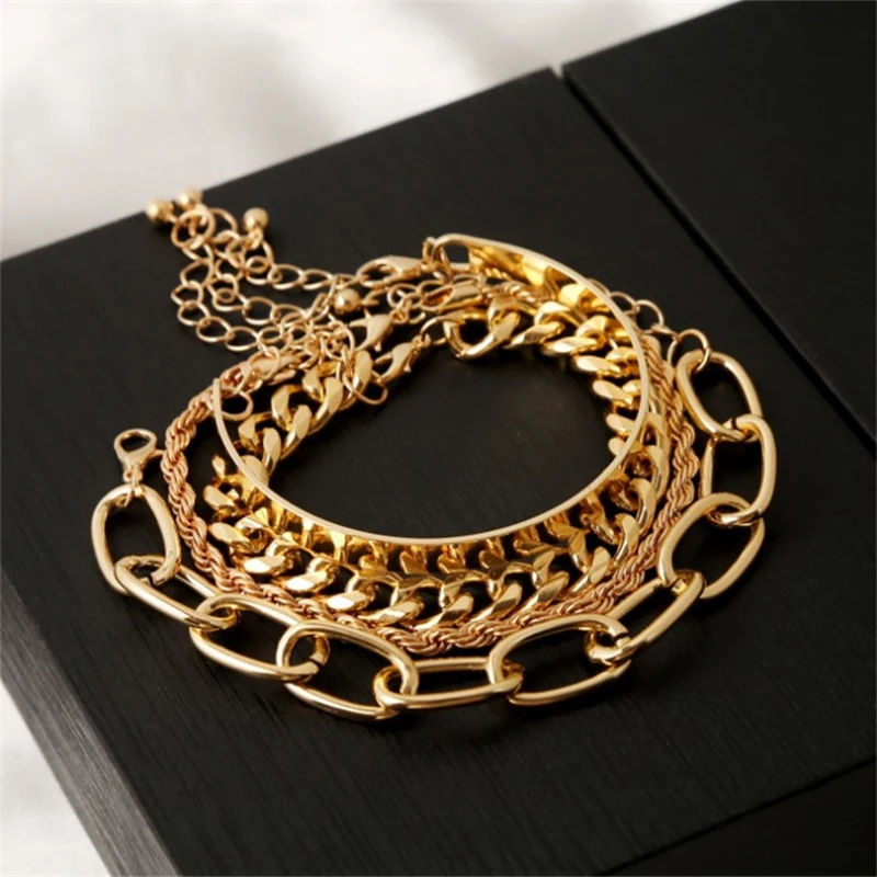 4 шт.компл. Панк многослойная цепочка толстая цепочка браслет прост...