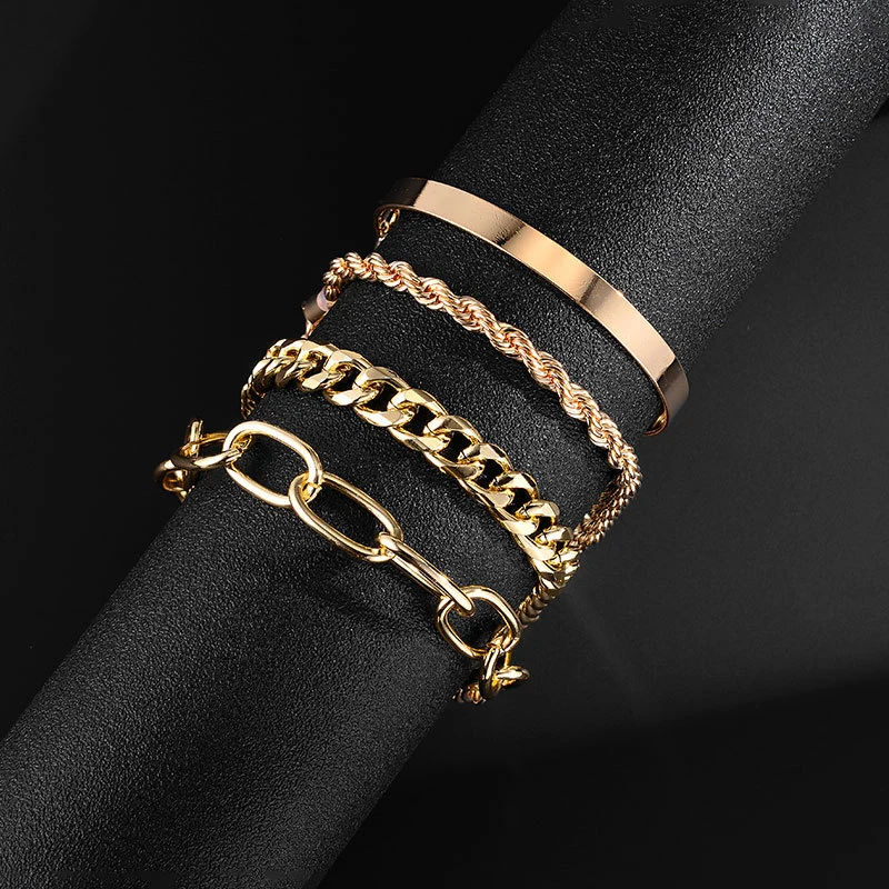 Комплект женских браслетов из кубинской цепи в стиле панк, 4 шт.