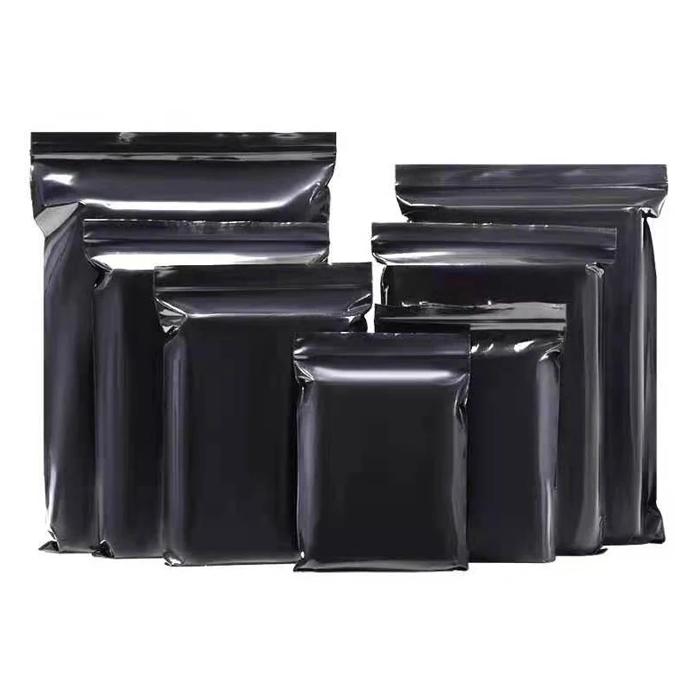 Черные пластиковые пакеты на молнии 100 шт.лот, перезаряжаемые повторно закрывающиеся герметичные пакеты на молнии, водонепроницаемые пыленепроницаемые мелочи, подарочная упаковка для рукоделия