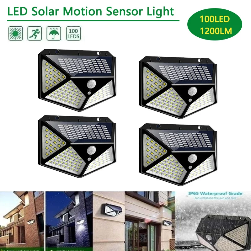 Мощный уличный светильник на солнечной батарее, садовый декоративный фонарь с питанием от солнечного света, водонепроницаемый уличный светильник с пассивным ИК датчиком движения, 100 светодиодов