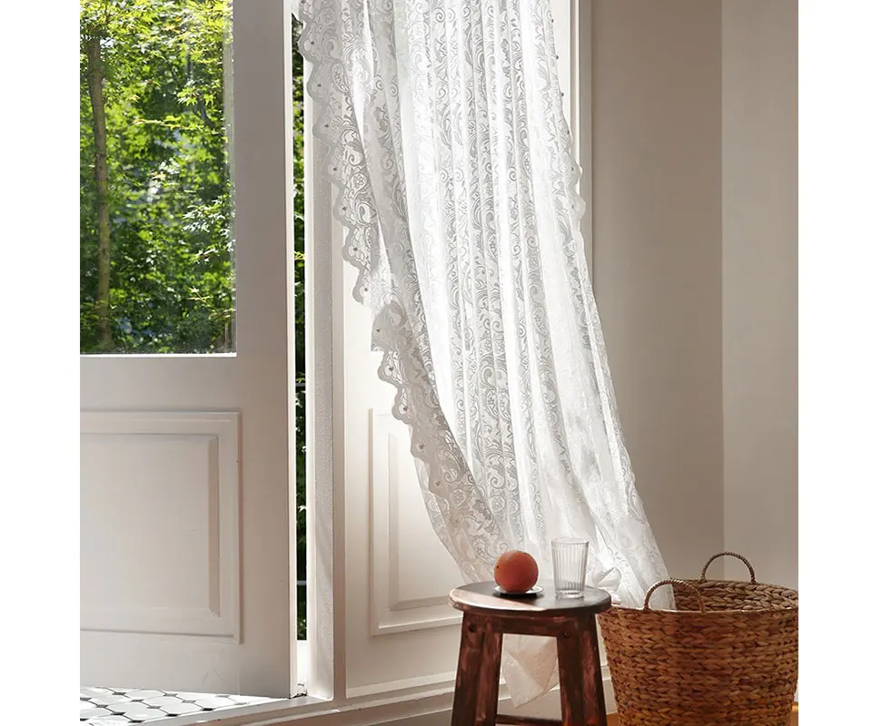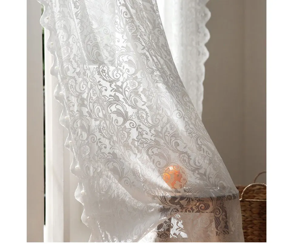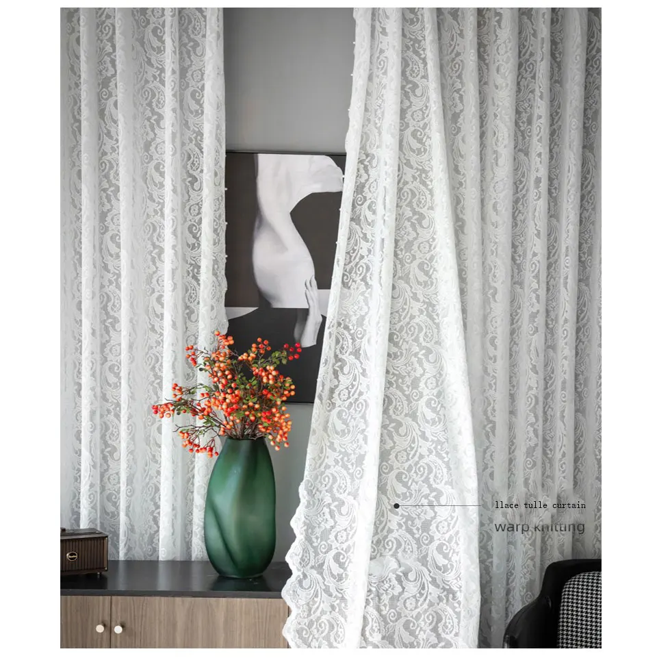 Роскошные белые цветочные кружевные тюлевые занавески с жемчугом для гостиной прозрачные Занавески с вышивкой для спальни Свадебный декор