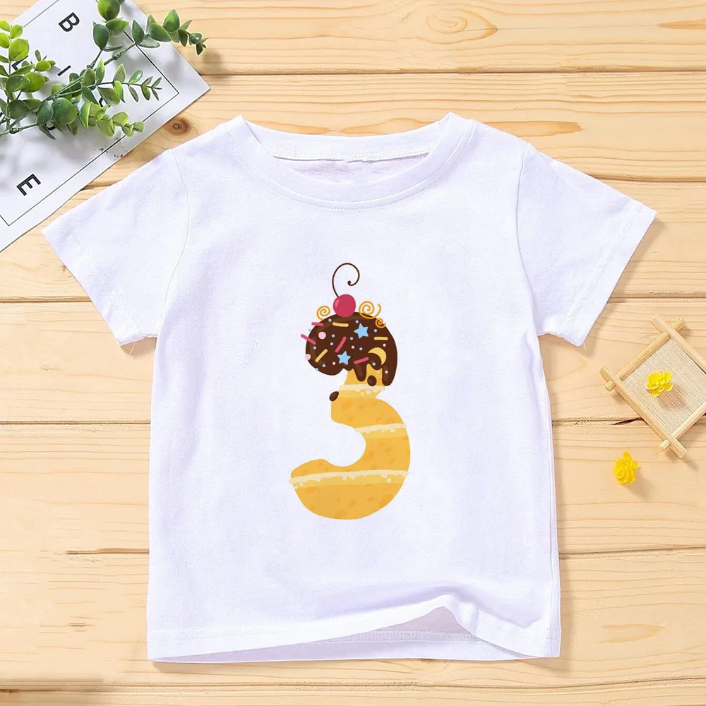 Новые детские летние футболки с пончиками для девочек и мальчиков на день рождения, футболки с короткими рукавами, размер От 1 до 9 лет, вечерние детские футболки