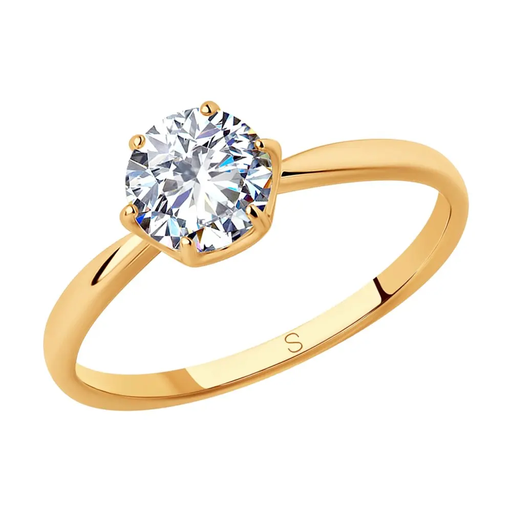 Кольцо SOKOLOV из золота с фианитом, Золото, 585, Женское, Оригинал...