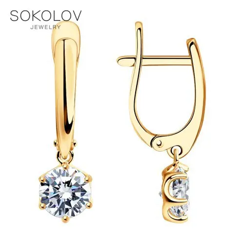 Серьги SOKOLOV из золочёного серебра с фианитами, Серебро, 925, Женские, Серьги 2022 тренд, Оригинальная продукция