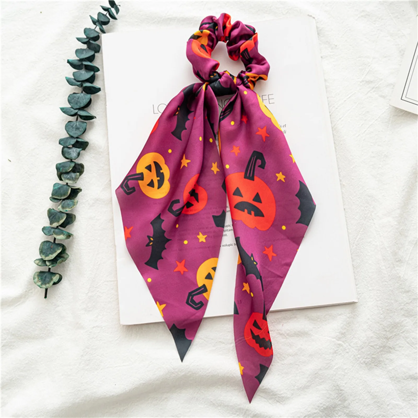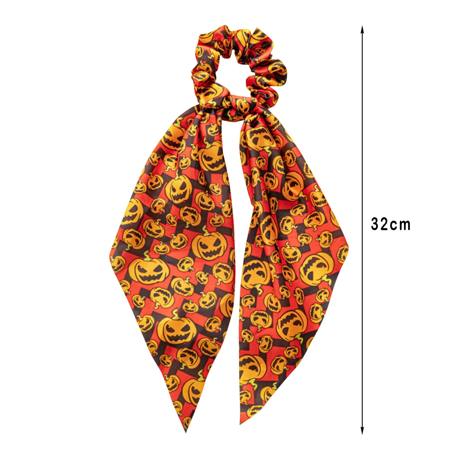 Резинка для волос с принтом Хэллоуин, модная эластичная заколка для конского хвоста с бантом, аксессуар на голову