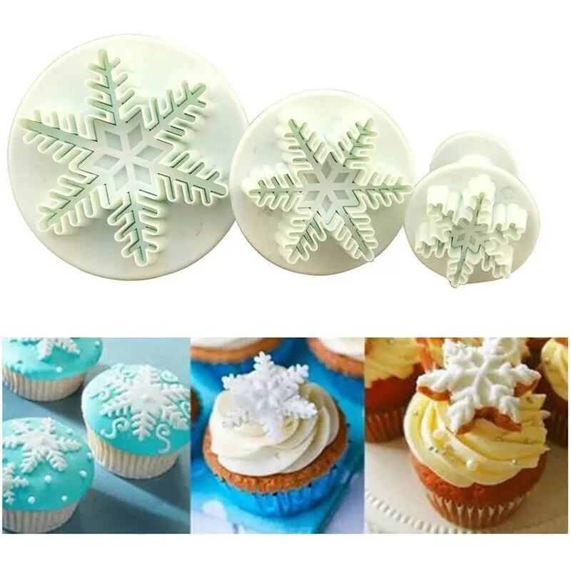 3 шт./компл. Рождество в форме снежинки для печенья формы, DIY тиснение Плунжер для торта с помадкой резак, кухонные инструменты для выпечки