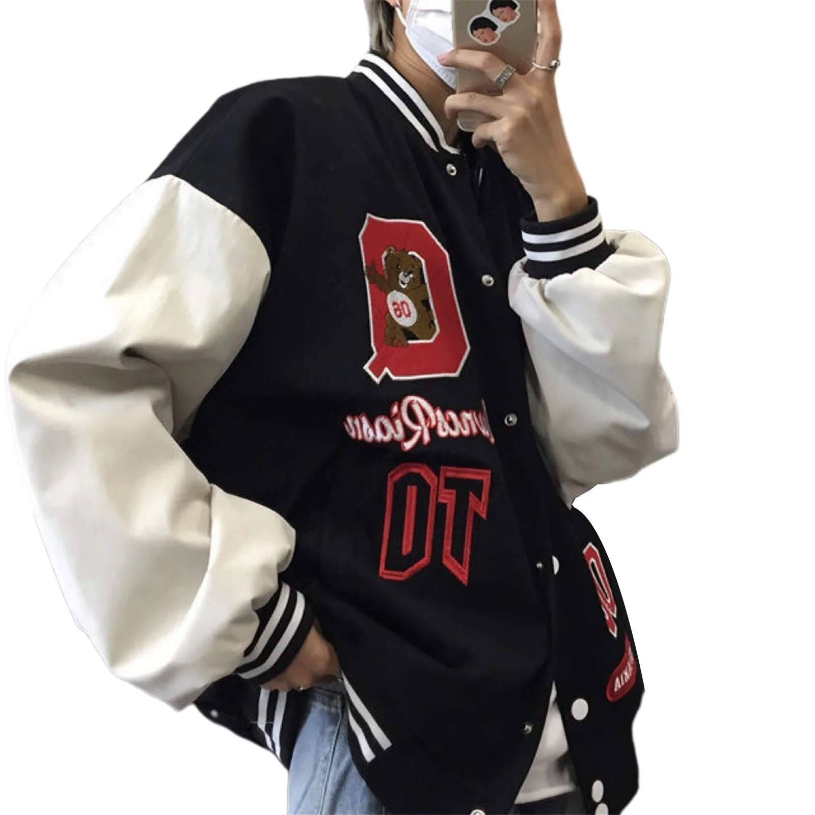 Женская бейсбольная куртка оверсайз с длинным рукавом и надписью