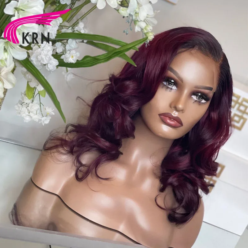 Короткие парики KRN Bob, бордовые 99j прямые человеческие волосы на...