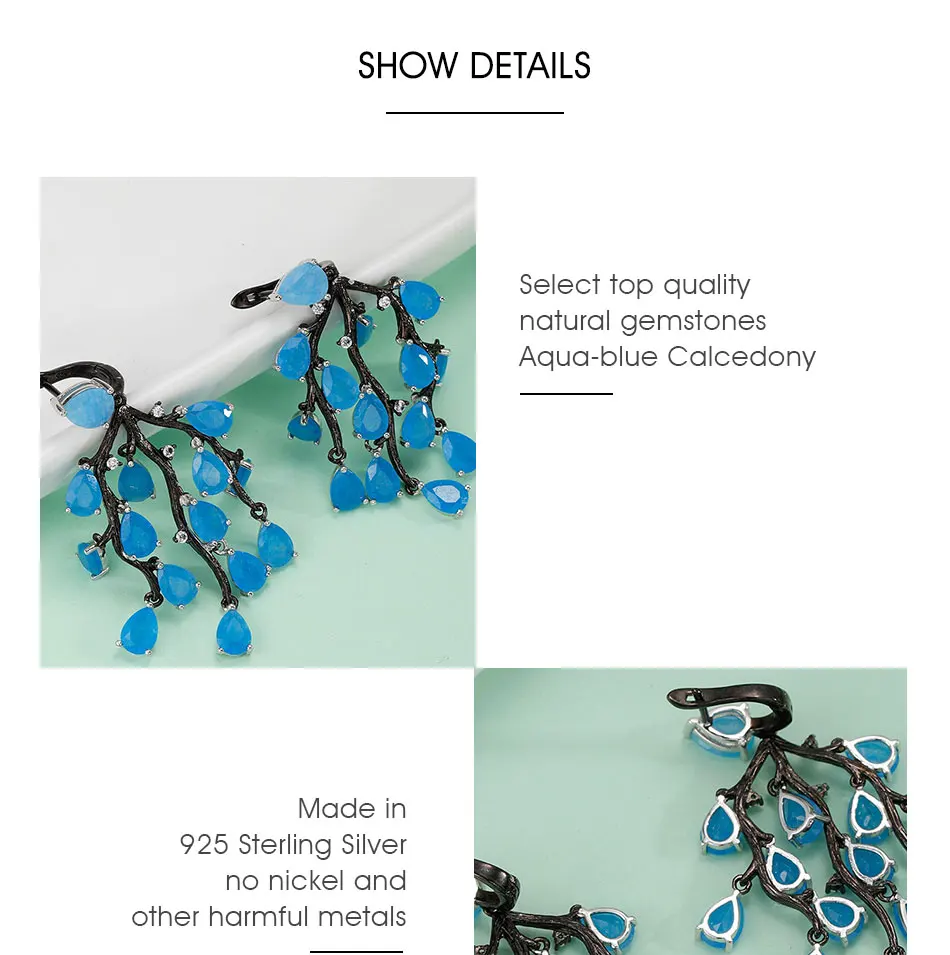 Женские серьги-кольца из серебра 925 пробы, с голубым танзанитом