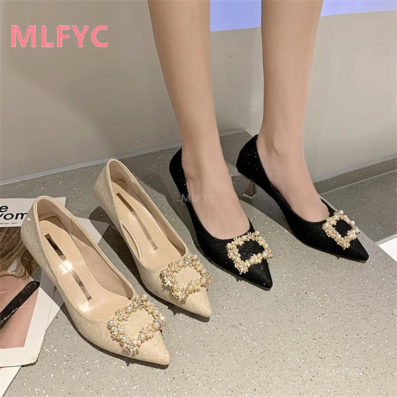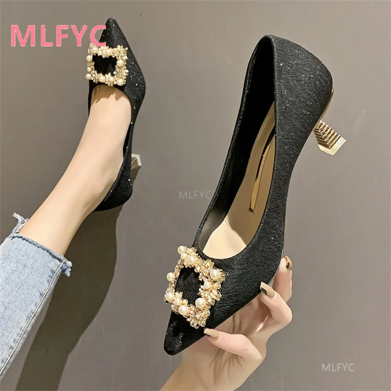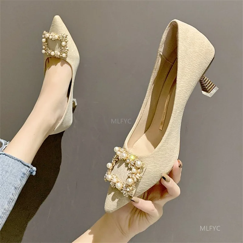 Женские туфли на шпильке, с квадратным носком и жемчугом