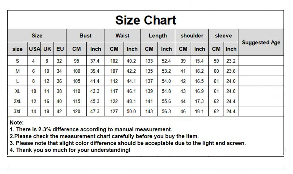 2. Пожалуйста, внимательно проверьте таблицу размеров. Особенно талия и бедра. Из-за различных партий может быть отклонение в 3 см