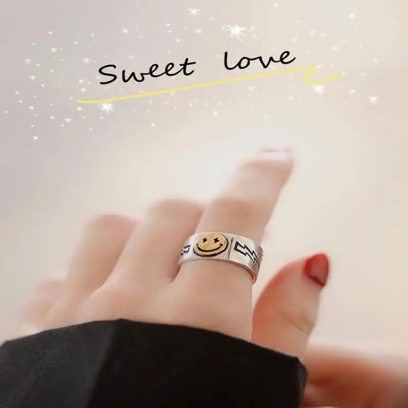 Корейские Модные Винтажные кольца на палец со смайлом и вспышкой в ...