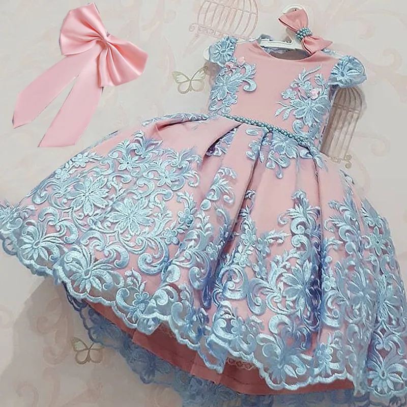Кружевное бальное платье для девочек, с цветочной вышивкой