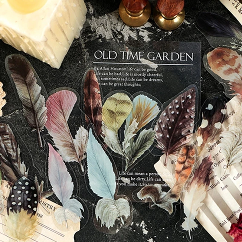 40 шт./сумка, винтажная наклейка с перьями, грибами, растениями, домашними животными, посылка, сделай сам, дневник, журнал, украшение, наклейка, альбом, скрапбукинг Материал: ПЭТ Клей: Да Функция: наклейки в альбом, наклейка для скрапбукинга, Уплотнительная наклейка и т. д. Посылка: 40 шт. x стикер для домашних животных