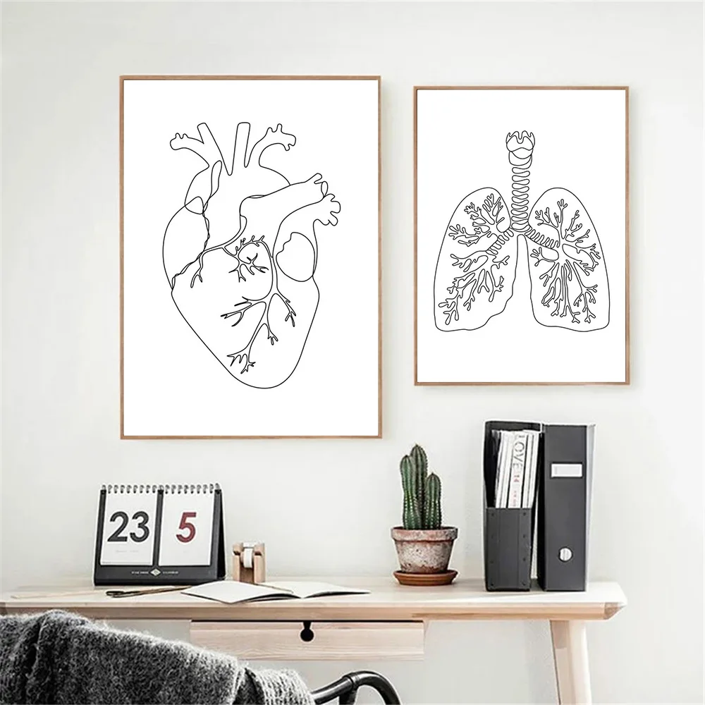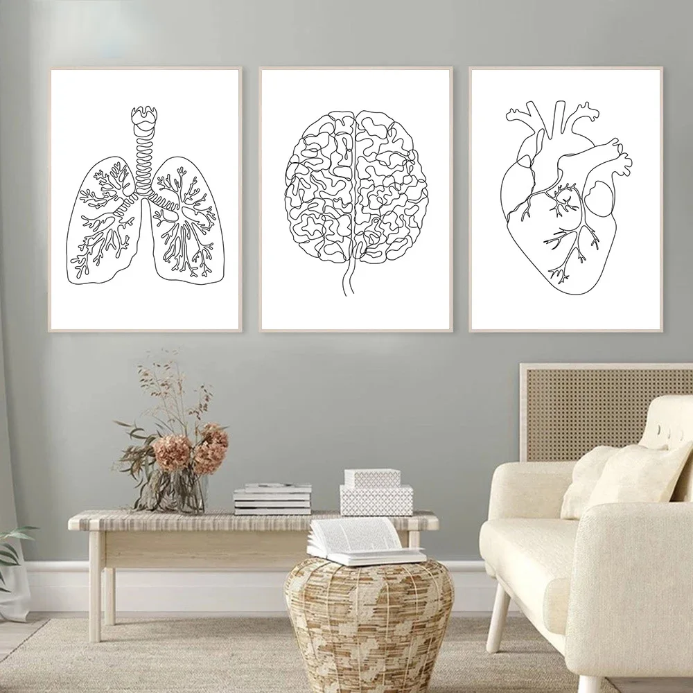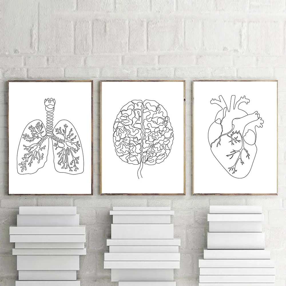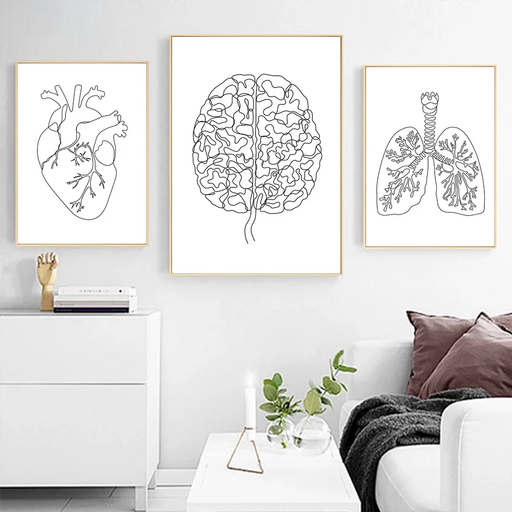 Художественный постер на холсте с изображением анатомии человека, абстрактная картина на стену мозга, сердца, легких, черно-белая картина на стену, художественные рисунки, декор клиники