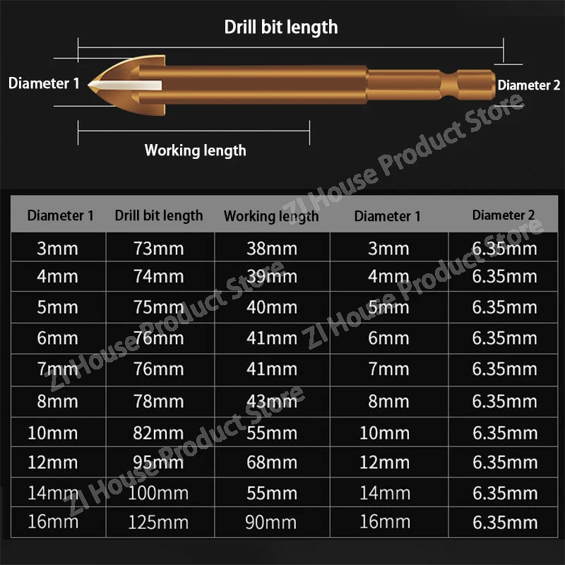 КукурШирокое использованиеПрофессиональные сверла для стекла и плитки обеспечивают плавное и точное сверление керамической плитки, мрамора, тонких железных пластин, зеркал и стекла. Не забудьте добавить воду или хладагент при сверлении.