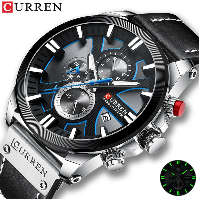 Часы CURREN Мужские кварцевые с хронографом, спортивные наручные, с кожаным ремешком, модный подарок для мужчин