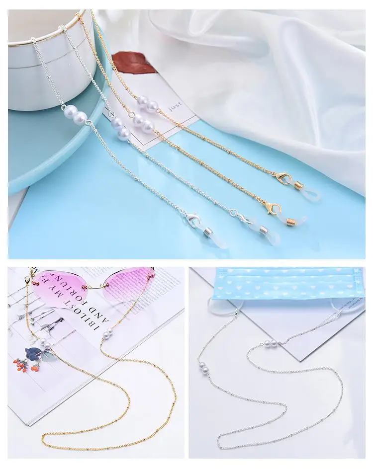 Модная цепочка для очков с жемчужной маской 2 цвета ожерелье с маской против потери шнурок для очков без следов шейный ремешок ушной веревка