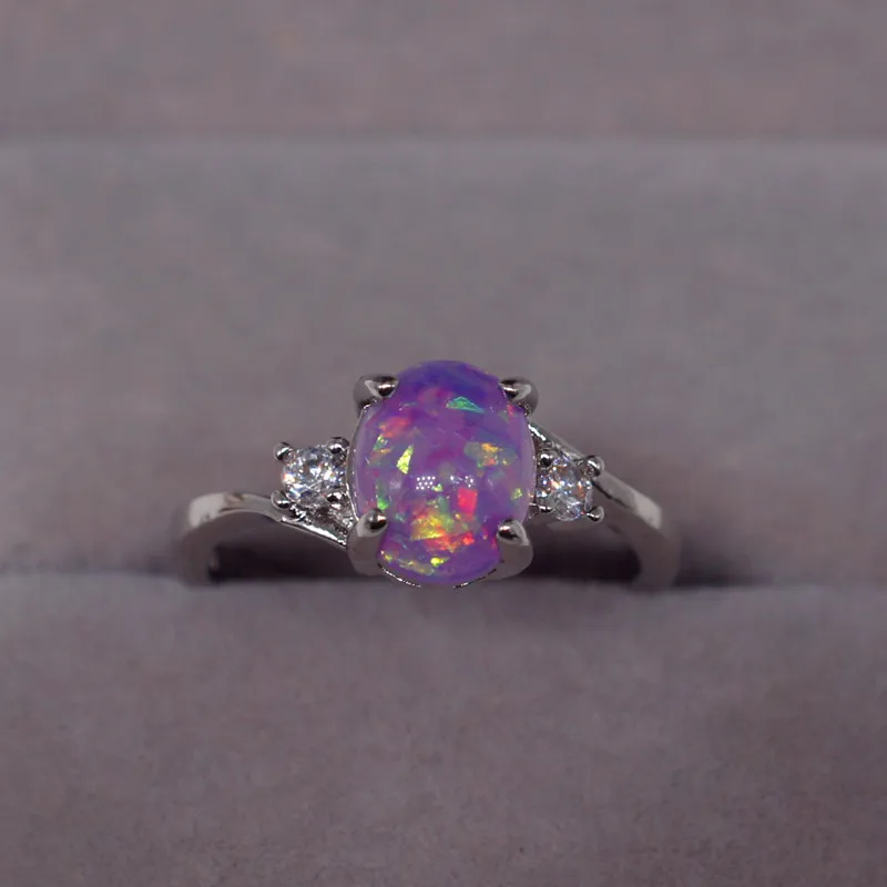 Новинка кольца с темно-фиолетовым драгоценным камнем для женщин и мужчин кольцо для пар серебряного цвета модное индивидуальное кольцо с цирконом и опалом Ювелирные изделия