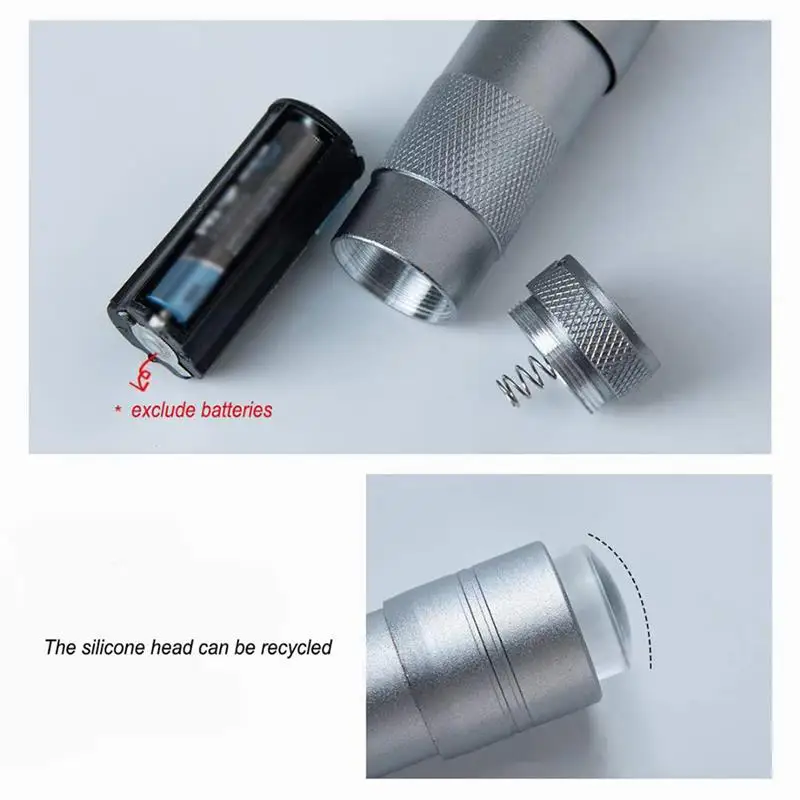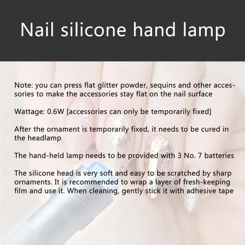 Примечание: Силиконовая головка этой ручной лампы фиксируется в корпусе в соответствии с его внутренней структурой. Его нельзя разобрать, чтобы избежать человеческого повреждения. Силиконовая головка мягкая и хрупкая. Он не может быть сломан энергично. Его нельзя прибивать или протирать спиртом или очищающей жидкостью; При очистке силиконовой головки достаточно использовать ленту для удаления остатка (ленты с небольшой липкостью достаточно), и действие должно быть легче, чтобы избежать повреждения силиконовой головки; Не может быть использован на продуктах, которые слишком жесткие, рекомендуется нажимать некоторые более мягкие продукты; Рекомендуется обернуть слой толстой пластиковой пленки перед использованием, которая может лучше защитить силиконовую головку и продлить срок службы.
