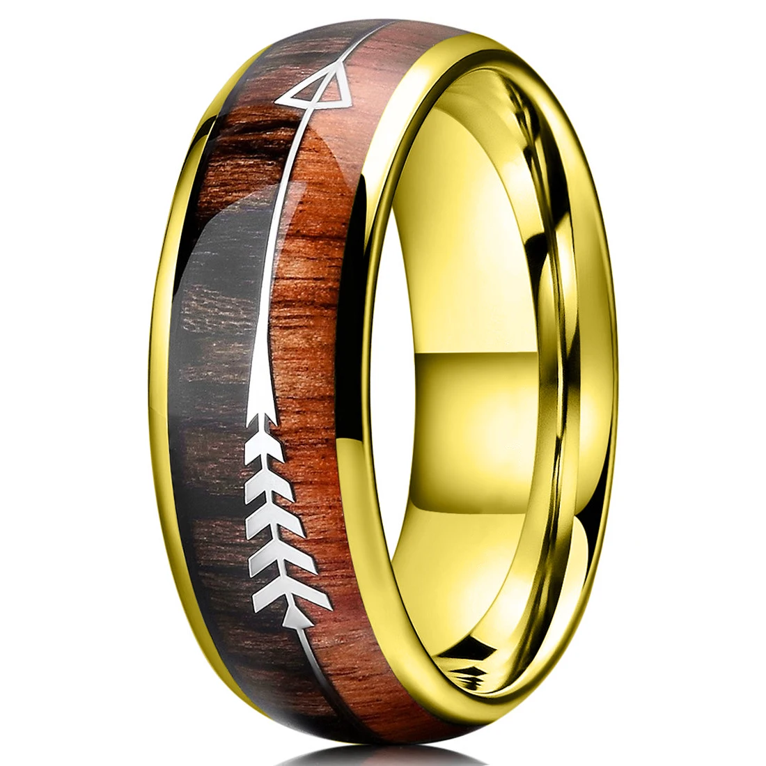 Классическое кольцо из нержавеющей стали золотого цвета для мужчин и женщин, Гавайское кольцо Koa с инкрустацией стрелы, охотничье кольцо, высокополированное мужское обручальное кольцо