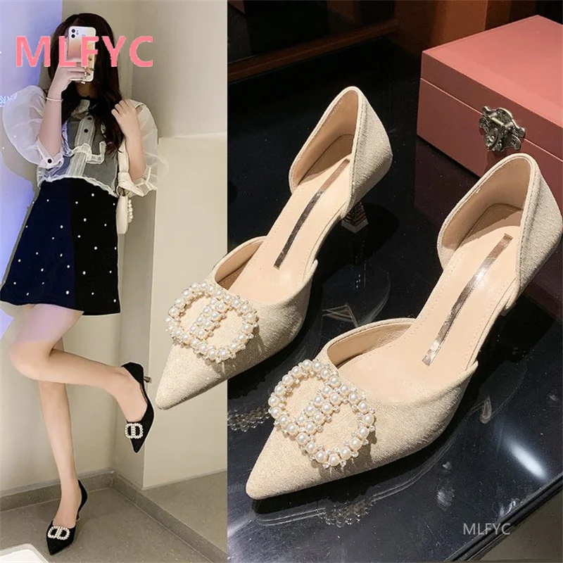 Женские туфли на высоком каблуке, туфли с острым носком и металлической пряжкой, осень 2021