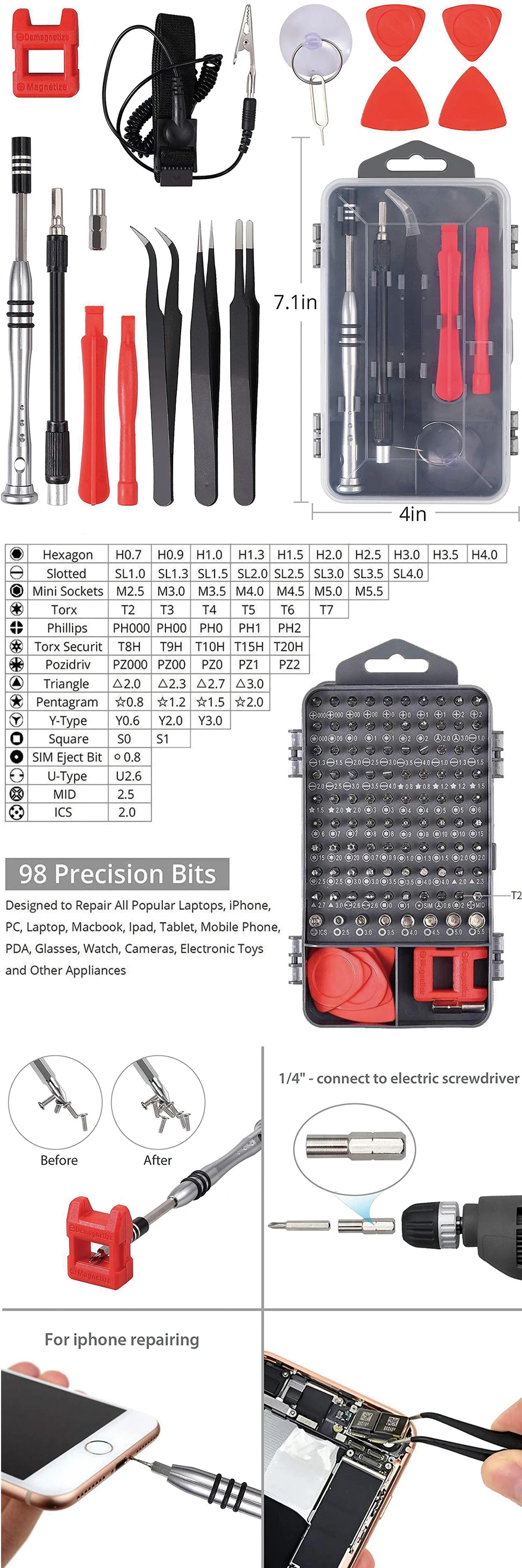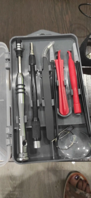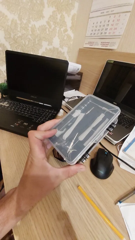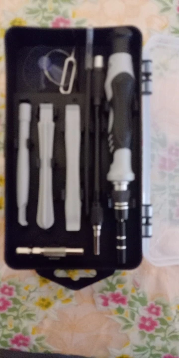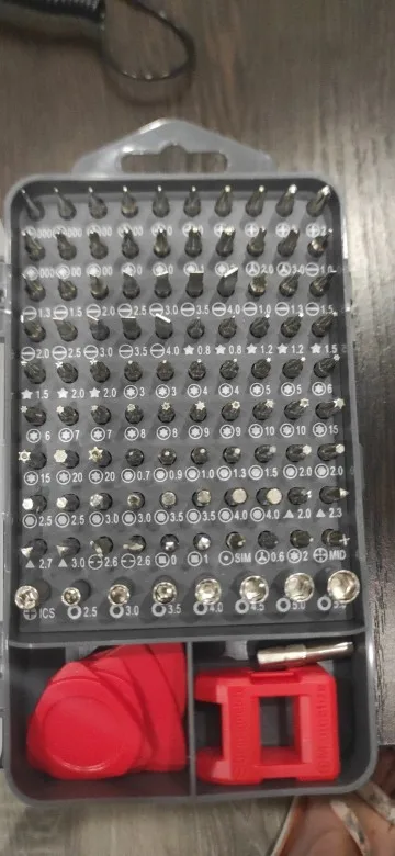 классный набор. компактная коробка , размером с блокнот А6. шнур неизвестного назначения, приспособление для намагничивания отвёртки есть в комплекте. в подарок технарю метко. доставка курьером DPd до адреса.