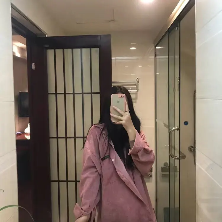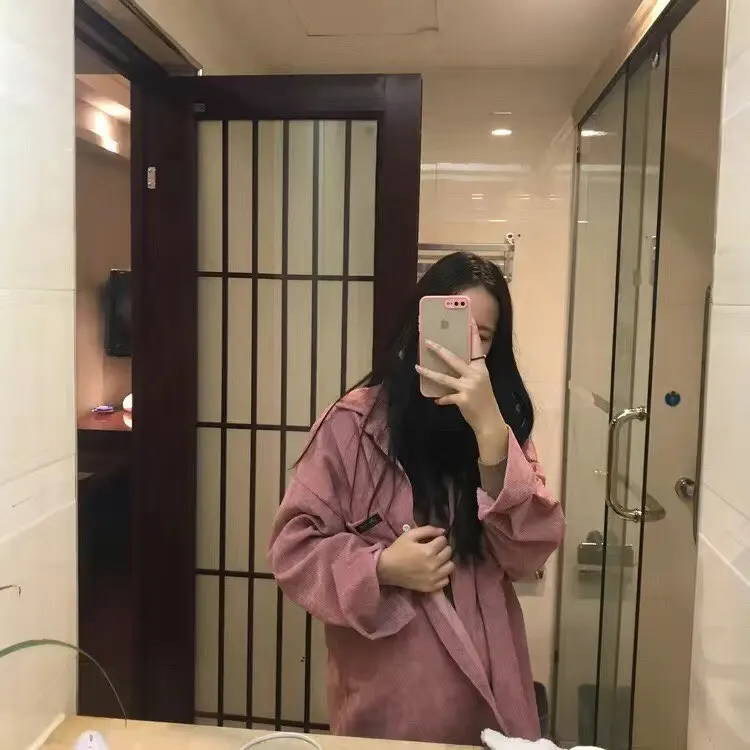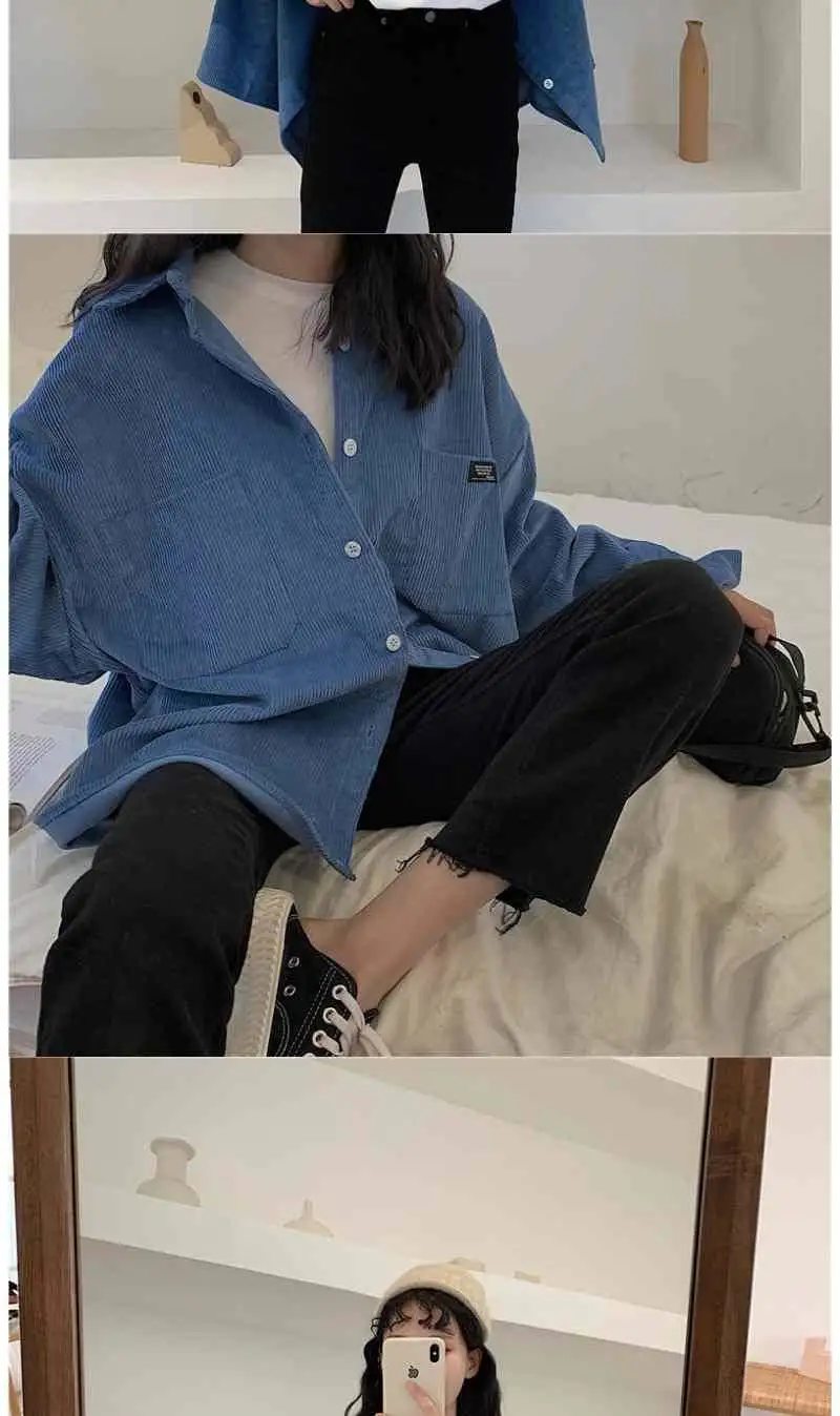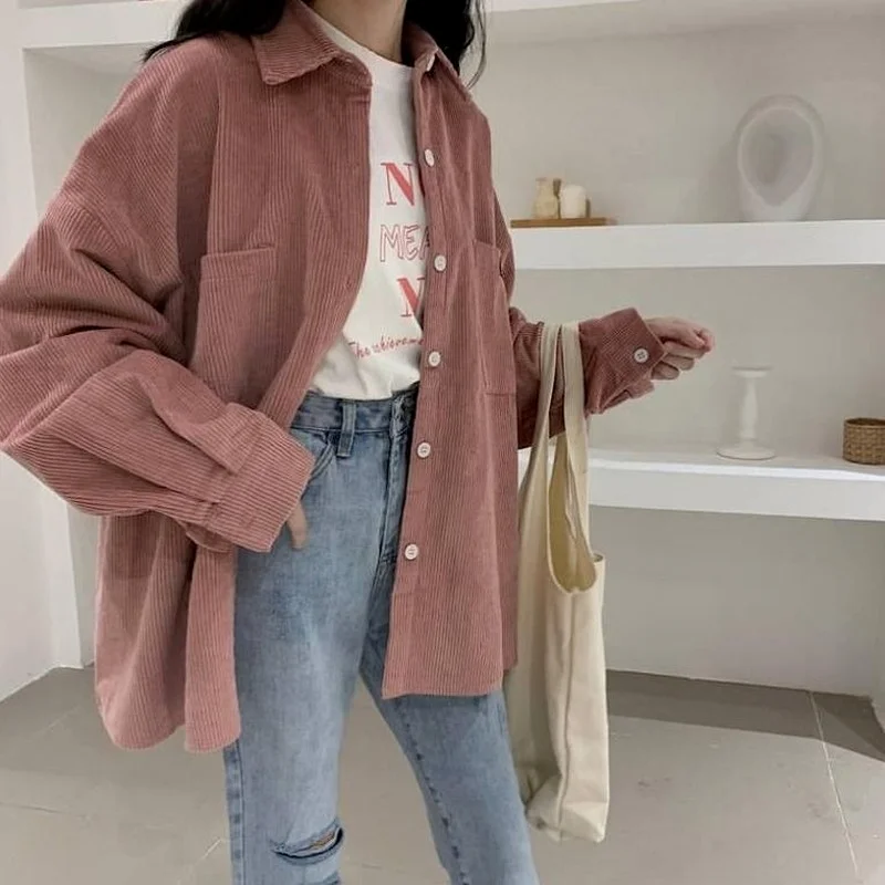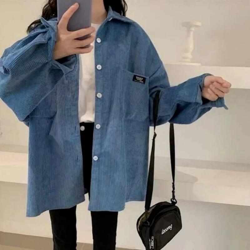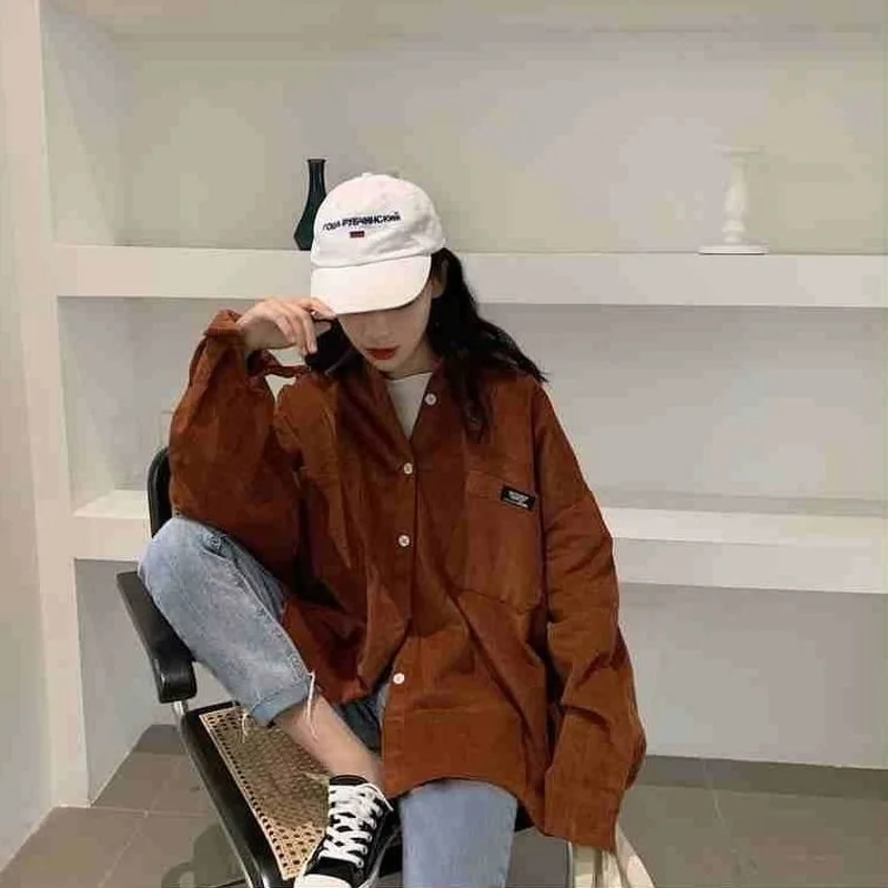 HOUZHOU коричневые винтажные повседневные вельветовые рубашки для женщин Harajuku оверсайз с длинным рукавом корейский стиль Базовая Свободная Женская блузка Осень