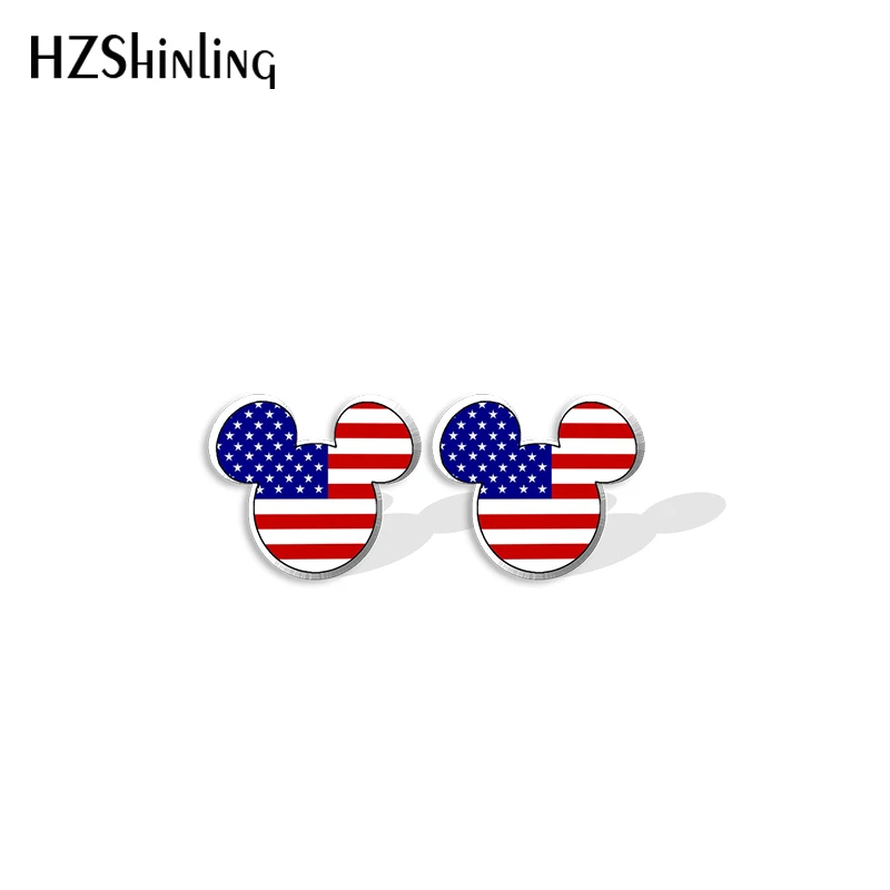 Серьги-гвоздики из акриловой смолы с рисунком Микки Мауса и Минни Д...