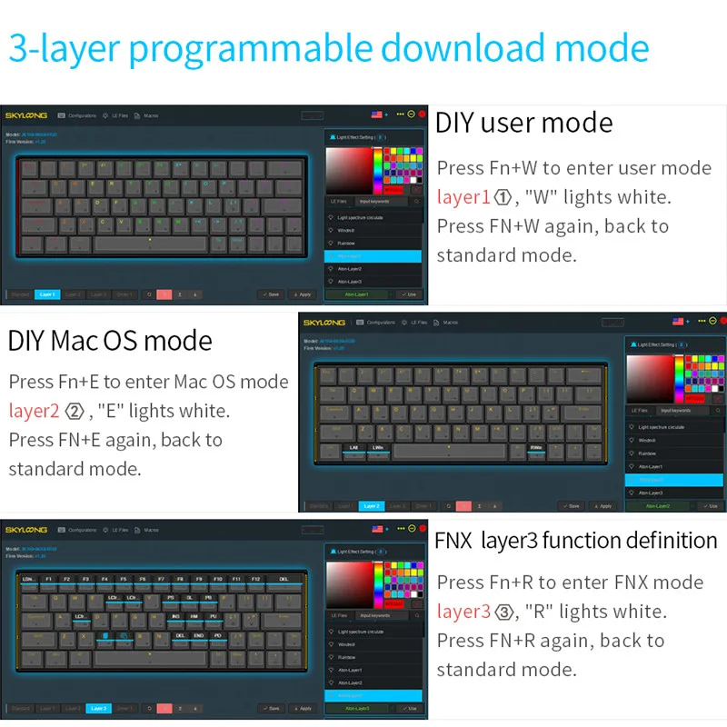 Механическая клавиатура SKYLOONG GK64, оптическая, горячая замена, программируемая RGB ABS клавиши, игровая клавиатура для ПКWIN