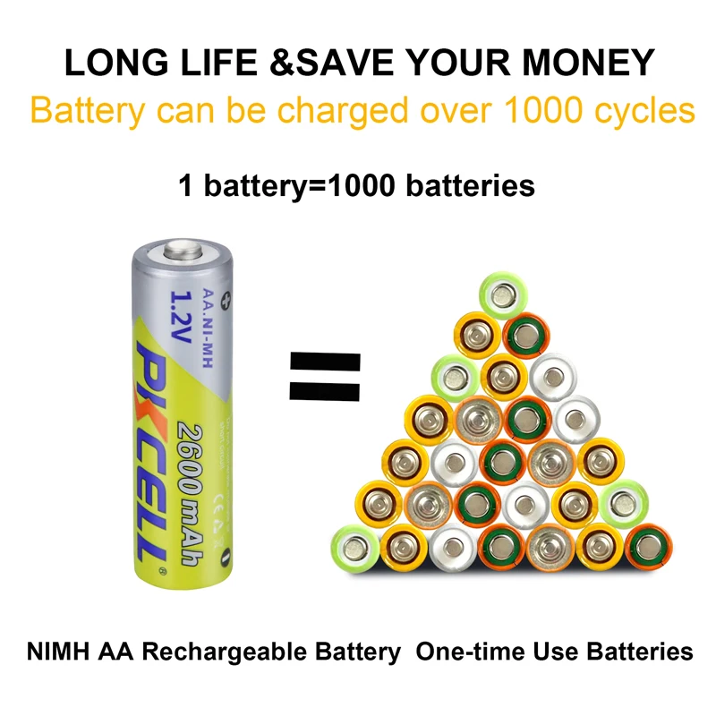 20 шт.лот Pkcell AA 2600 мАч NIMH AA Аккумуляторная батарея 1,2 в aa Аккумуляторы с 1000 циклом для фонарика и 5 шт. аккумуляторных батарей
