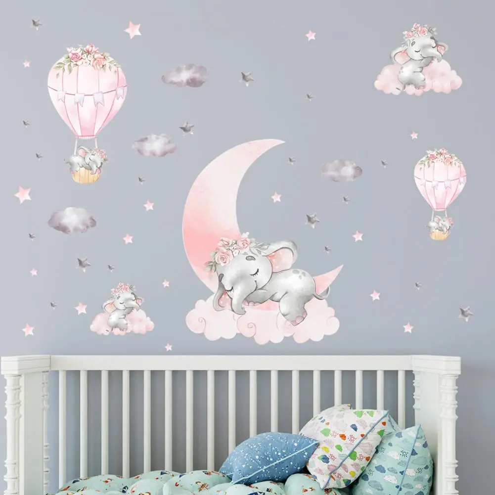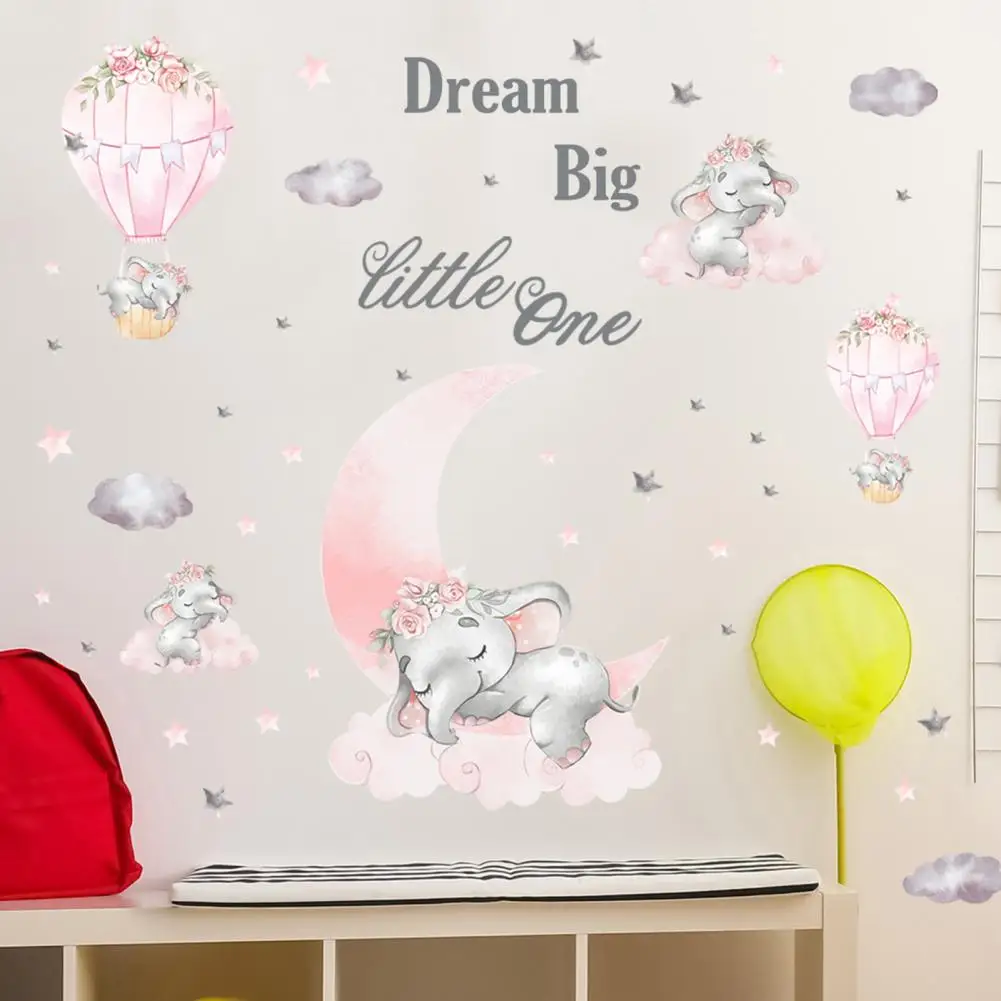 2 шт.компл., мультяшная Настенная Наклейка в виде розового слона, клейкая мультяшная ПВХ Съемная настенная бумага сделай сам, наклейка для детской комнаты