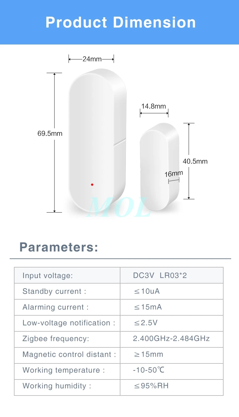 ZigBeeВключает:Датчик двери * 1, руководство * 1, липкий * 1