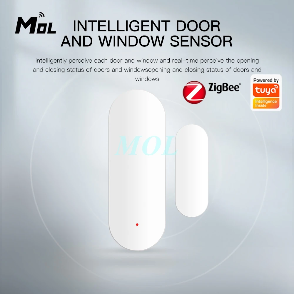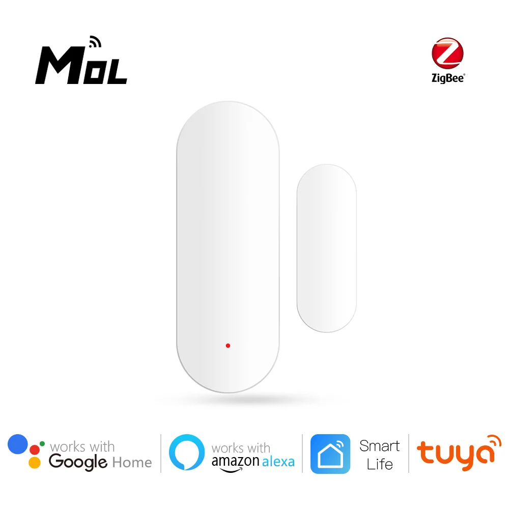 Смарт-датчик двери MOL Tuya ZigBee, детекторы открытиязакрытия дверей, магнитный выключатель, датчик окон, охранная сигнализация для умного дома