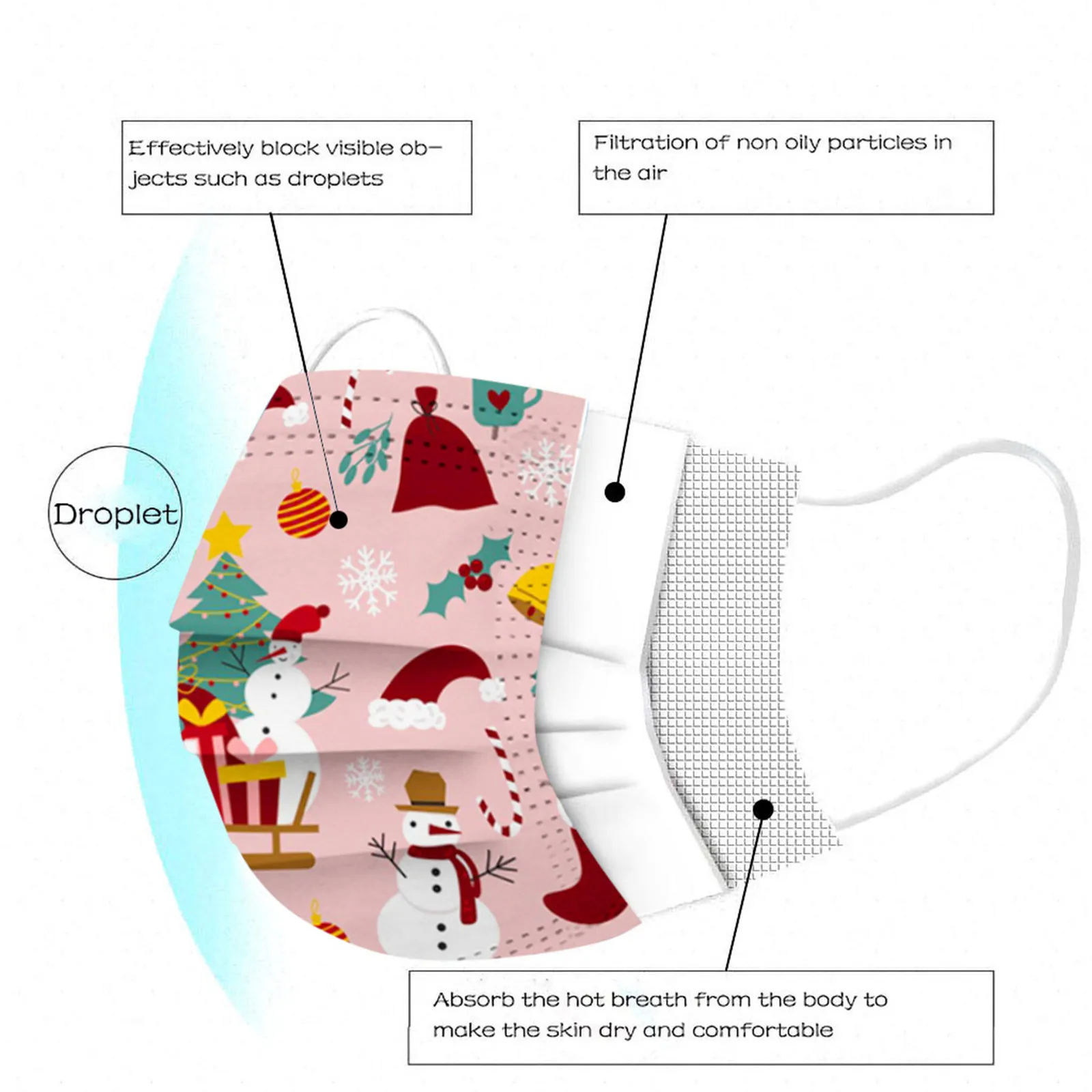 10 шт взрослая женщина одноразовая Рождественская мультяшная 3-слойная защитная маска для лица