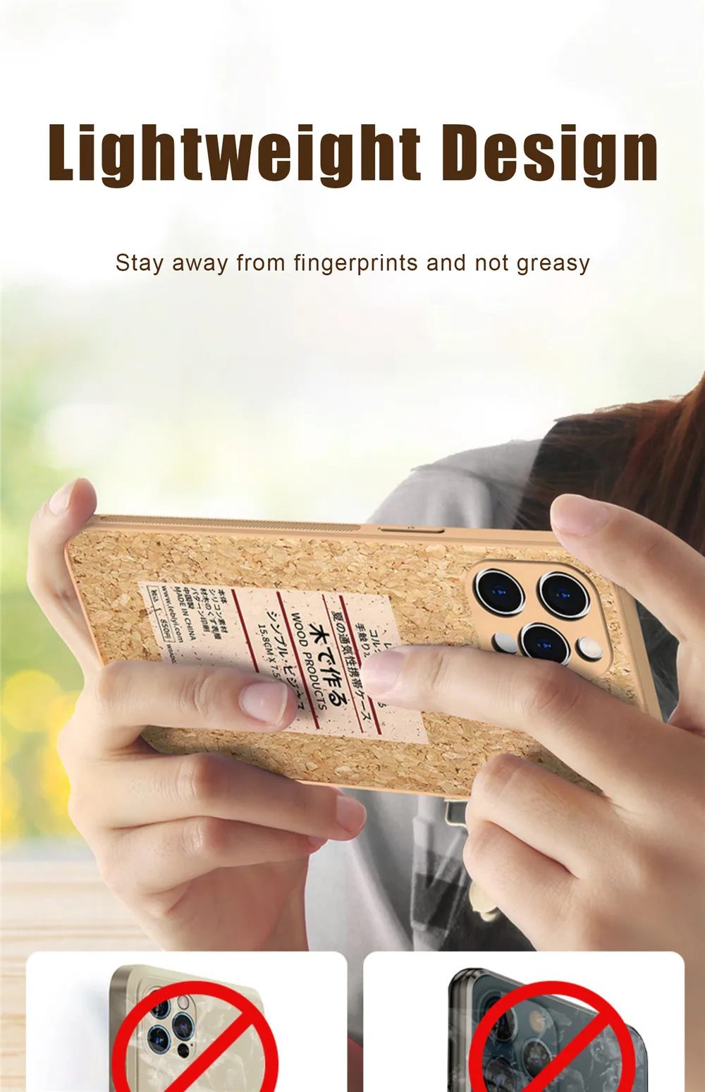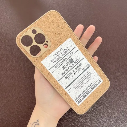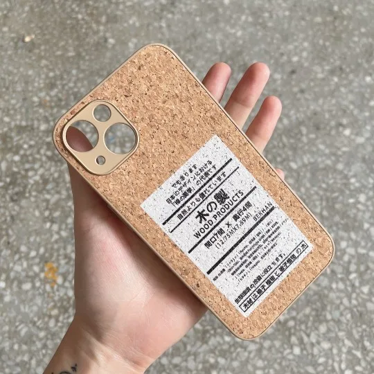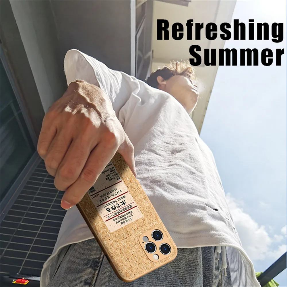 Роскошный дышащий чехол из пробковой древесины для iPhone 14 13 12 11 Pro Max XR X XS 7 8 Plus, противоударный мягкий силиконовый чехол с этикетками